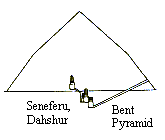 The real mystery of the IV Dynasty is not so much how Khufu could have built his pyramid on such a scale but how his father, Seneferu, could, apparently, have done three of them nearly as big, one at Meidum and two at Dahshur, all within sight of each other. The pyramid at Meidum was begun as a step pyramid, perhaps by Huni of the III Dynasty (although evidence of this is missing, Huni is usually credited with a long enough reign to have completed a large pyramid), but was then certainly finished as a true pyramid, with the steps filled in, by Seneferu. Why this was done is a good question, but one thing for certain is that it as not done well. The structure was unstable. At some point the outer parts actually collapsed, leaving the core looking rather like a huge cube. The first pyramid at Dahshur, the "Bent Pyramid," was then begun as a true pyramid from scratch, but it too had stability problems, and had to be finished with a flattened top. The full mastery of the medium then appears in the third pyramid, with a good foundation, larger blocks, and successful completion. The whole technique of truly large scale construction thus rapidly evolved in just one reign. Seneferu seems to have had money to spend, time to spare (in 24 some years), and a very clear end in mind. A shame he can't tell us about it. Unlike what we find in Herodotus, who repeates stories that all the pyramid builders were tyrants, the stories surviving in Egyptian literature all make out Seneferu as a kind and just king, despite the scale of his building.