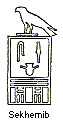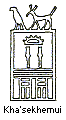 The Dynasty ends with another interesting turn. Two names occur, "Kha'sekhem," "The Power Arises," and "Kha'sekhemui," "The Two Powers Arise." The serekh of Kha'sekhemui is uniquely topped by both Horus hawk and Seth dog. The inference is irresistable that Kha'sekhem restored the country with a compromise and fusion between the two cults or factions, changing his name to reflect this. The restoration seems to have worked, but not the fusion, since the III Dynasty immediately begins with strong rule but not a hint of Seth again as a royal title. With such mysterious and tantalizing clues, our frustration at the limited evidence is considerable.