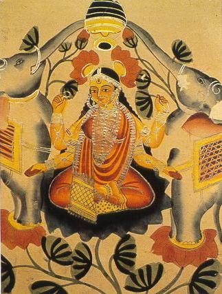 The flower so prolific in the imagery of both India and Egypt, grows out of the waters and opens its petals to be warmed by the sun: to be fertilized. From the earliest imagery in stone at Sanchi, of the first century BC in India, the lotus is associated with Sri, the goddess of fertility, who is later invoked as Lakshmi, the goddess of wealth and abundance - being worshipped by Buddhists, Jains, and Hindus alike. The lotus is held in each hand by Surya, signifying the fertilizing powers of the sun as he travels through the universe.